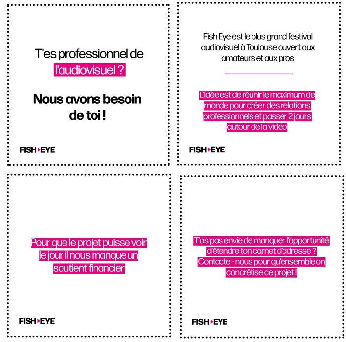 Dans un contexte de recherche active de partenariats, Fish Eye Festival déploie une stratégie de communication ciblée, axée principalement sur deux axes :
